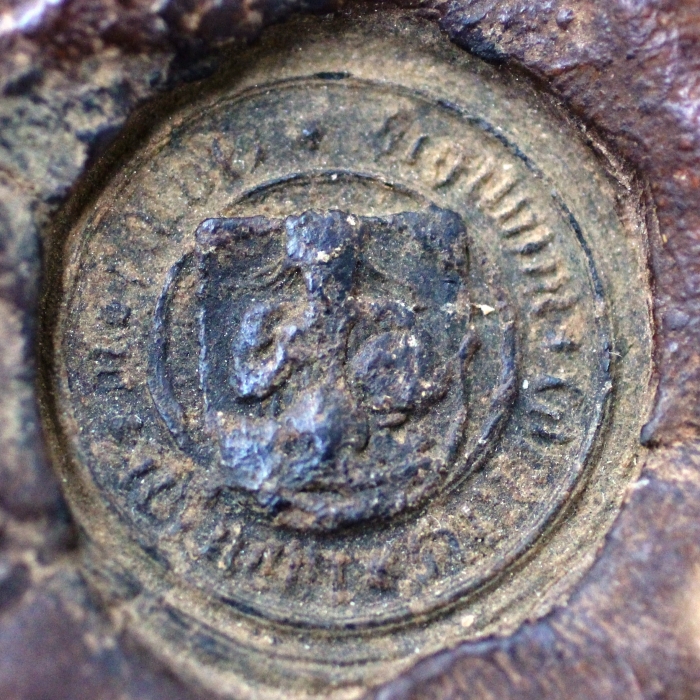 Természetes színű pecsétfészek benne kör alakú zöld viaszú pecsét (CSH_00207)