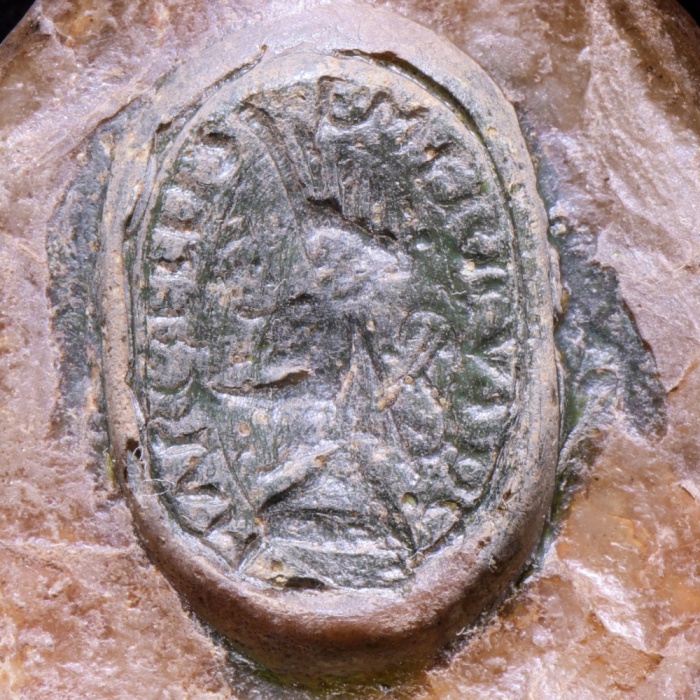 Természetes színű pecsétfészek benne ovális alakú zöld viaszban (CSH_00080)