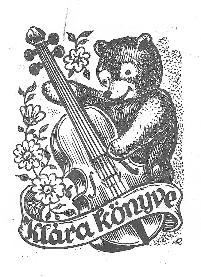 | dc.description.image | Játékmackó gitárral, balra virágfüzér, alul szalagon felirat: Klára könyve. A szerző monogramja a kép jobb alsó sarkában: "JK". | en |