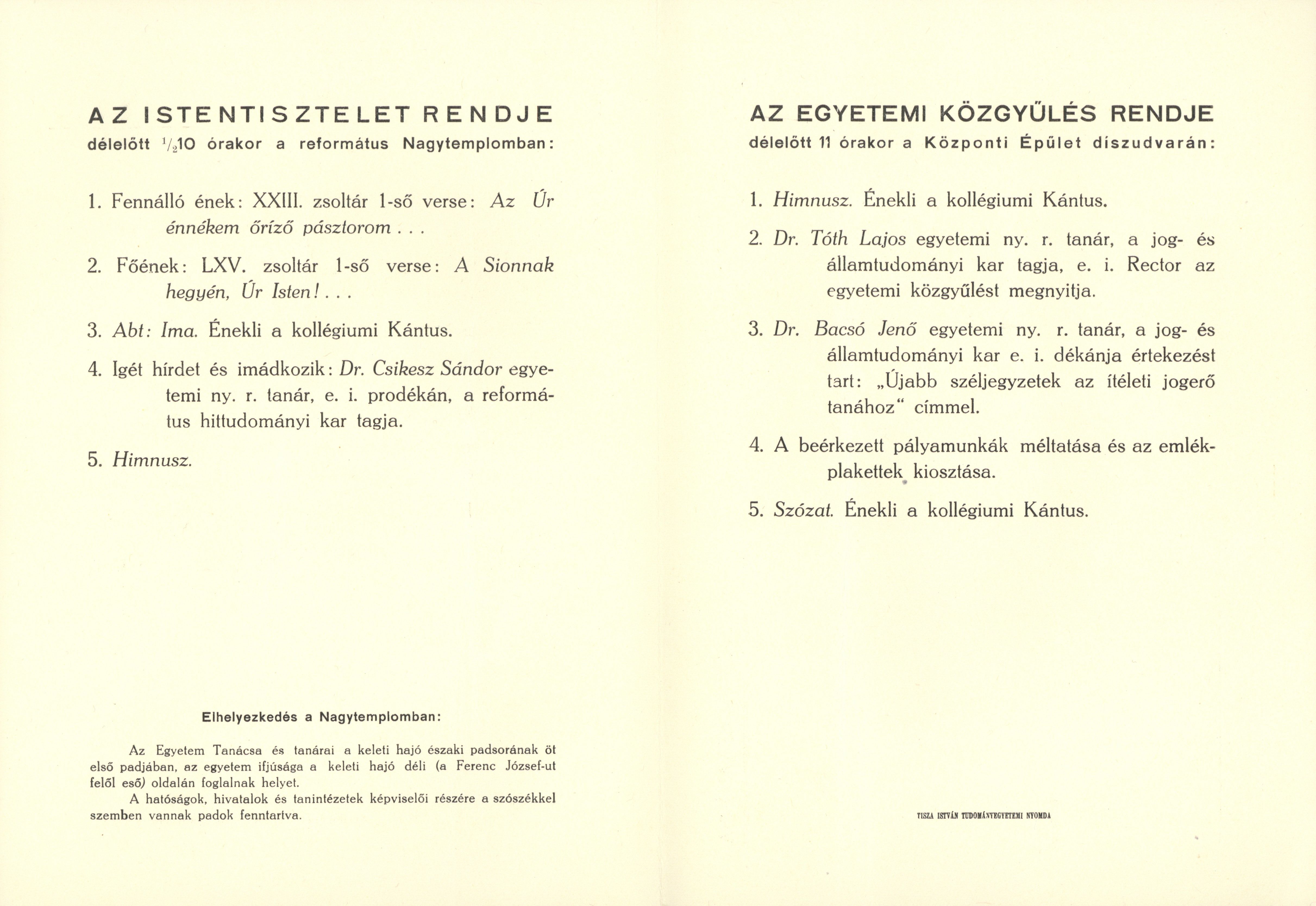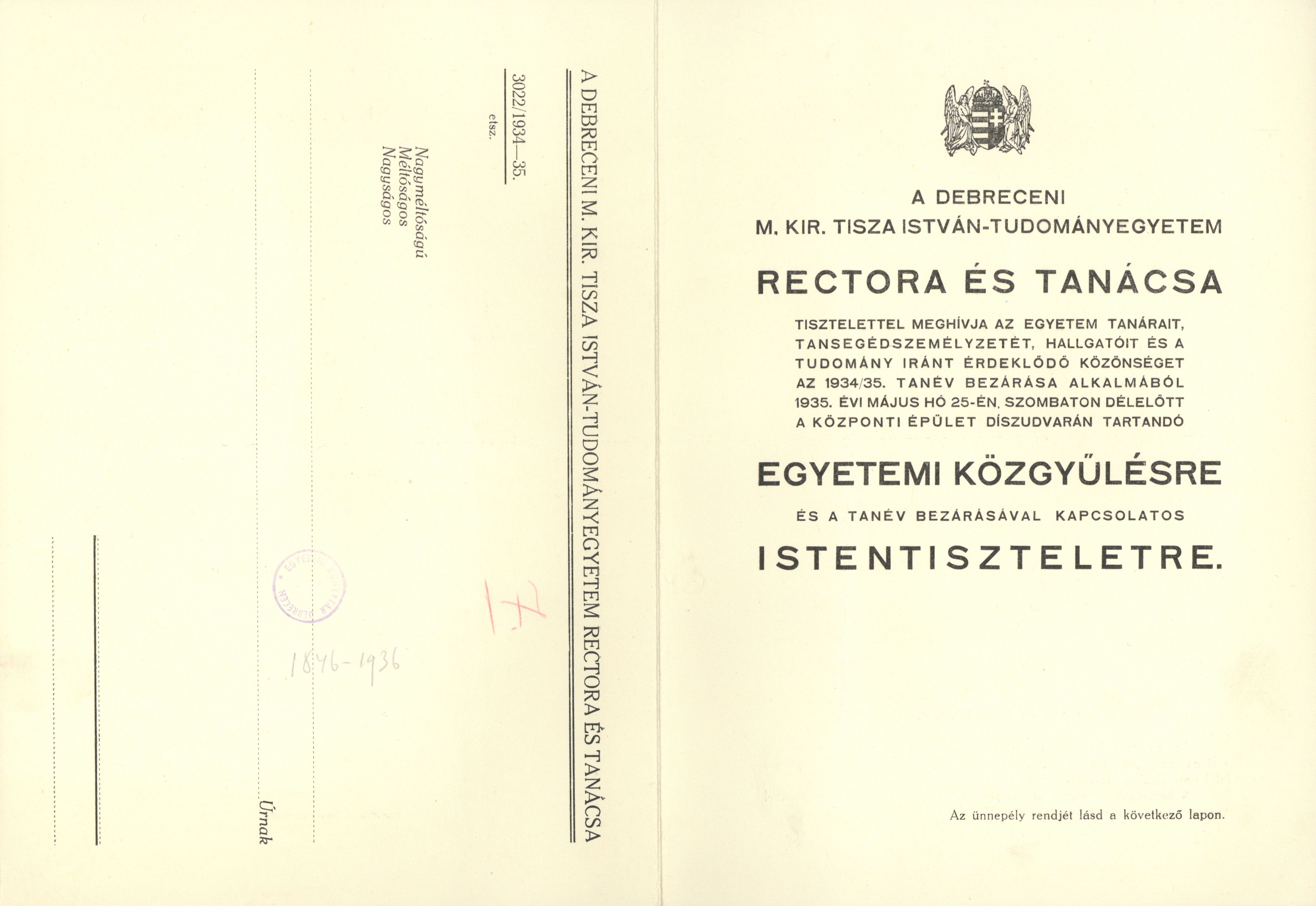 A Debreceni M. Kir. Tisza István - Tudományegyetem Rectora és Tanácsa tisztelettel meghívja...