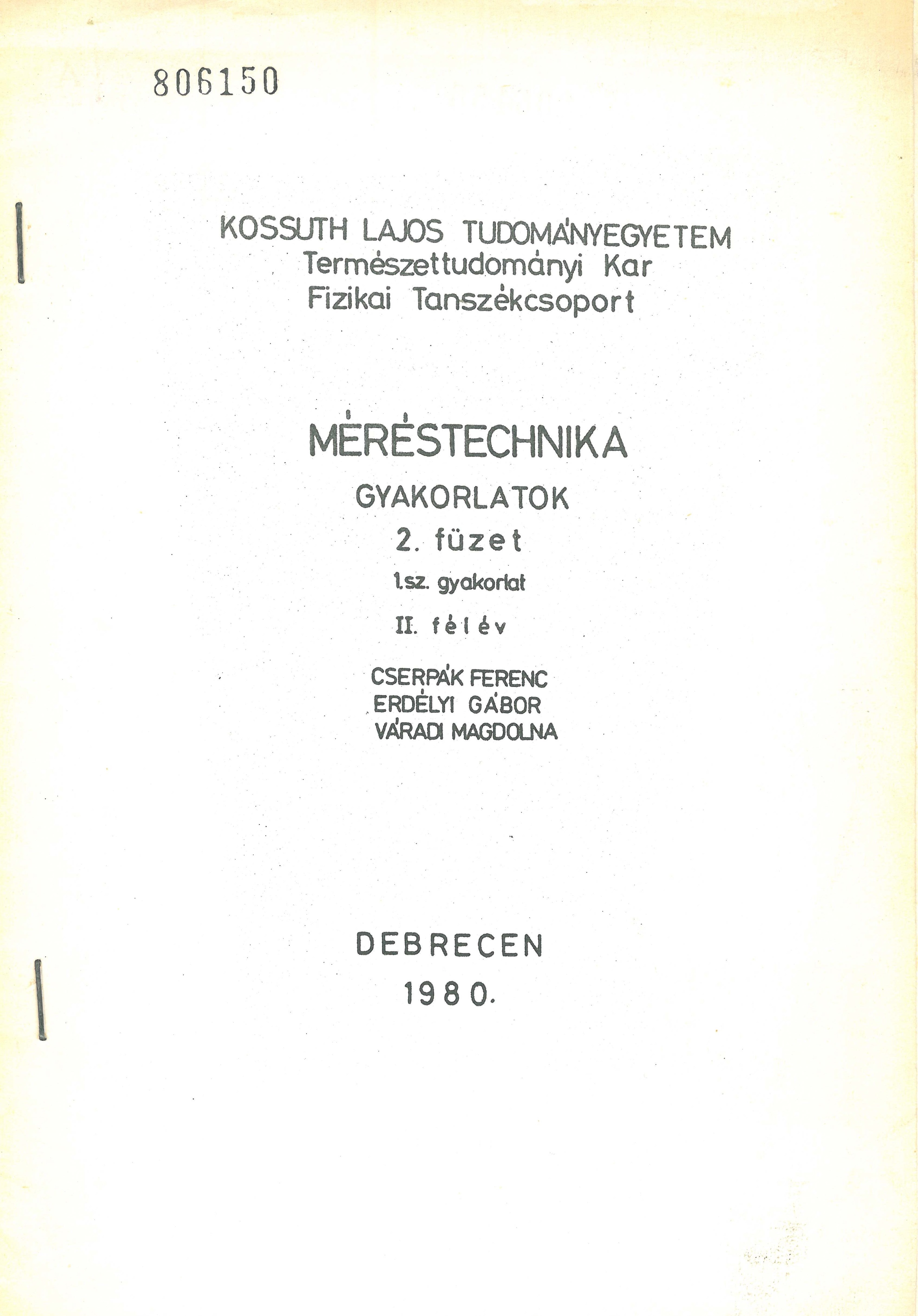 Kötet címe (évfolyam száma)