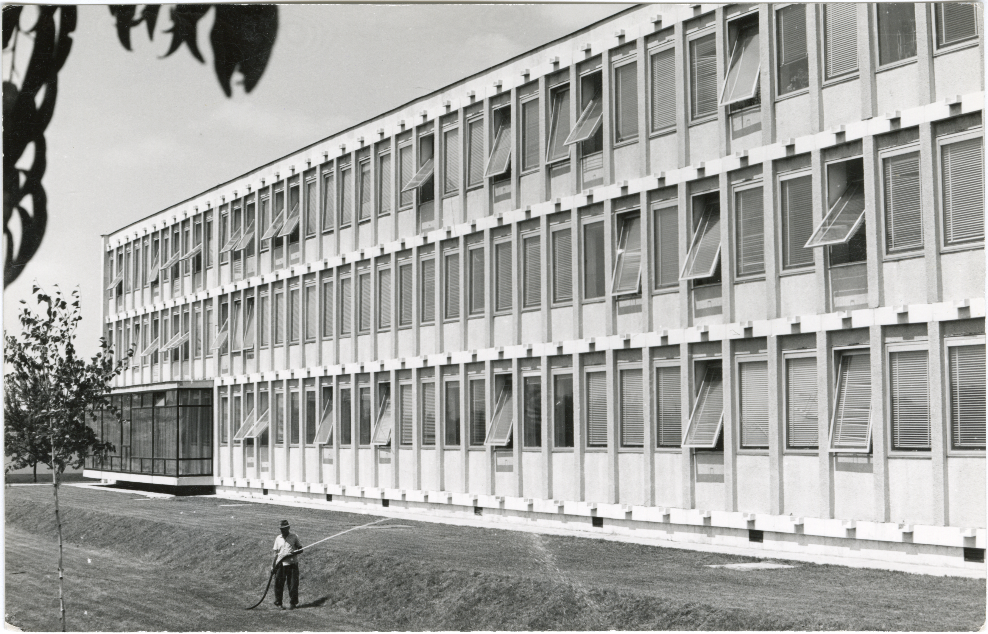 Új tanügyi épület parkosítás, locsolás, 1967.