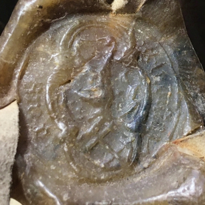 Természetes színű pecsétfészek benne kör alakú pecsét zöld viaszban (CSH_00232)