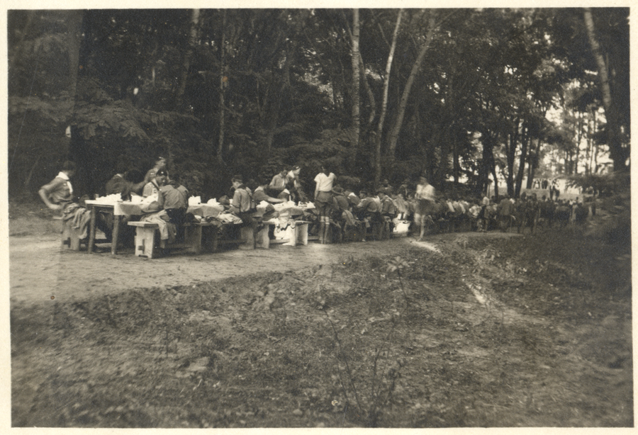Külföldi cserkészek látogatása Gödöllőről (étkezés az erdőben)