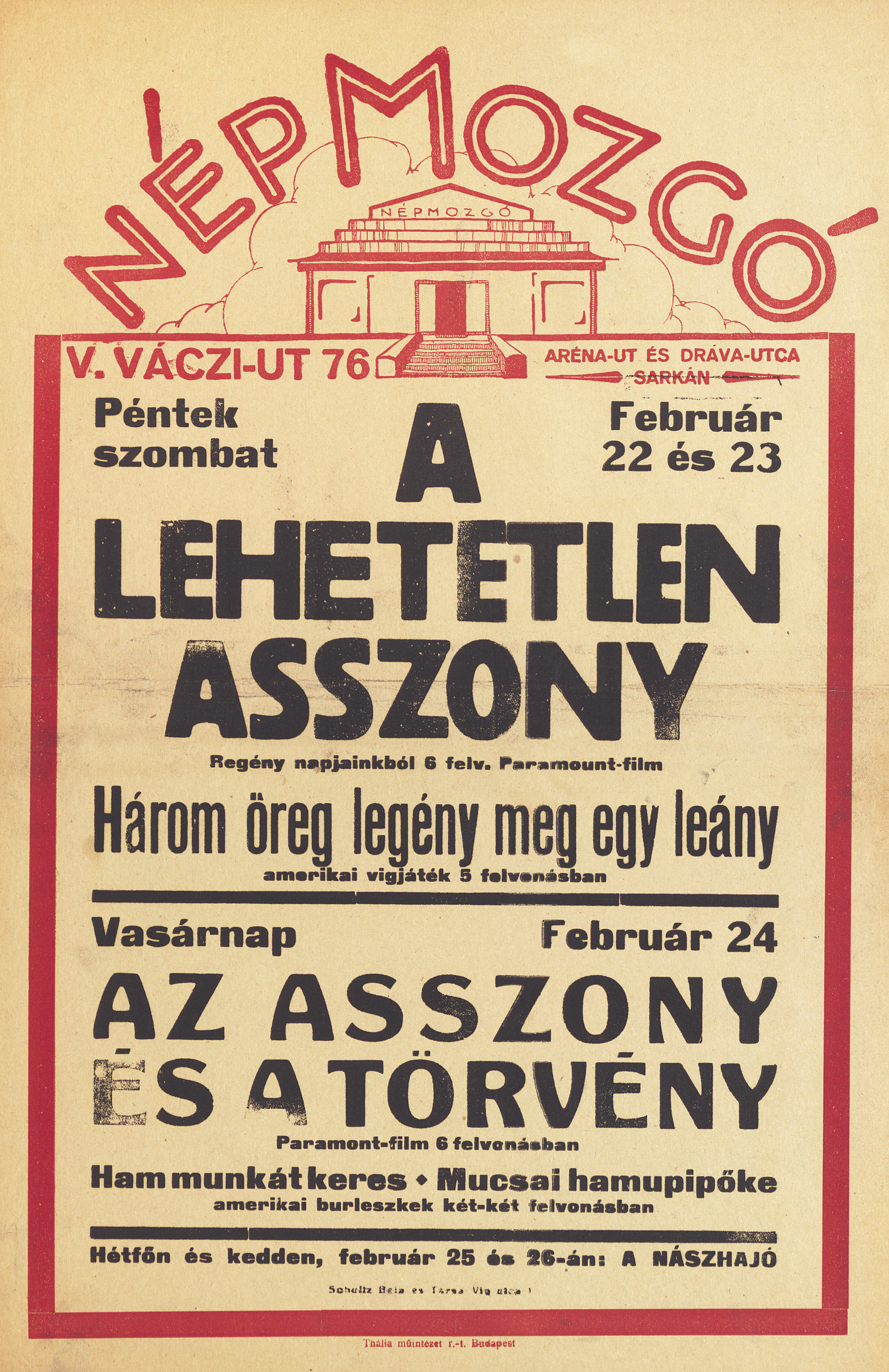 | dc.description.image | A pirossal keretezett, rajzolt plakát fejlécében a mozi épülete is látható. A szöveges rész feketével íródott. | hu_HU |