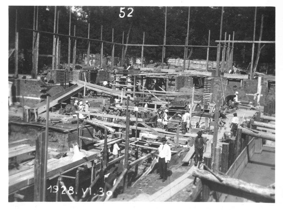 | dc.description.image | A képen a központi épület építkezésének 1928. június 30.-i állapota látható. A kiásott, felállványozott alapon munkások dolgoznak. | hu |
