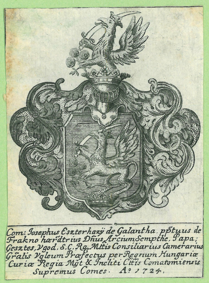 | dc.description.image | Az Esterházy család címere 1724-ből, alatta Esterházy József gróf latin nyelvű címfelsorolása. | en |