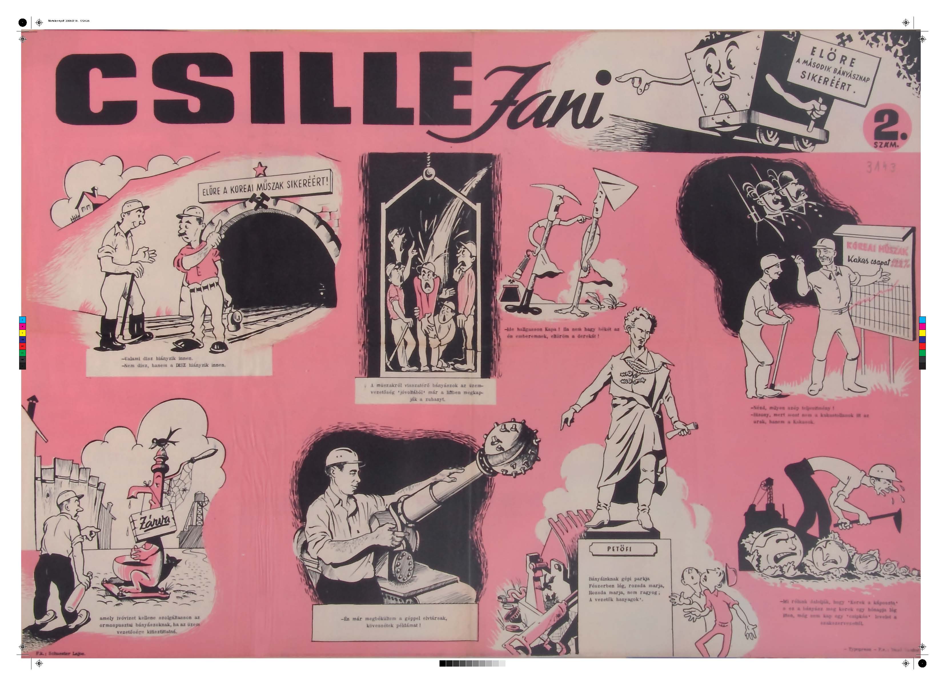 | dc.description.image | Bányászokat látunk rózsaszín felületen, vicces stílusban ábrázolt tanulságos jelenetekben. | hu_HU |