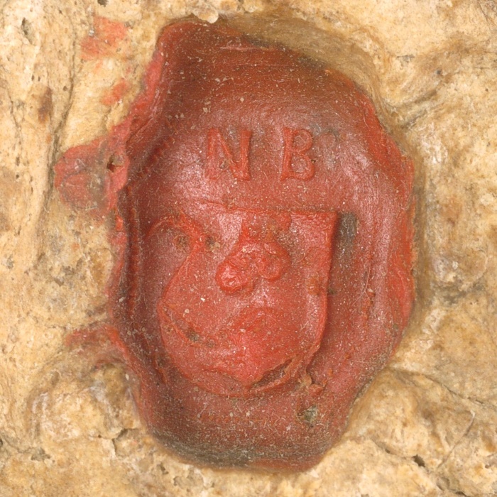 Természetes színű pecsétfészek benne nyolcszög alakú gyűrűspecsét vörös viaszban. A pecsétmezőben címerpajzs, jobb oldalán kopjatartó bevágással. Benne jobbra néző, növő ökörfej. Pajzs fölött „N” és „L”. Körirata nincs. Mérete kb. 14×18 mm. (CSH_00122)