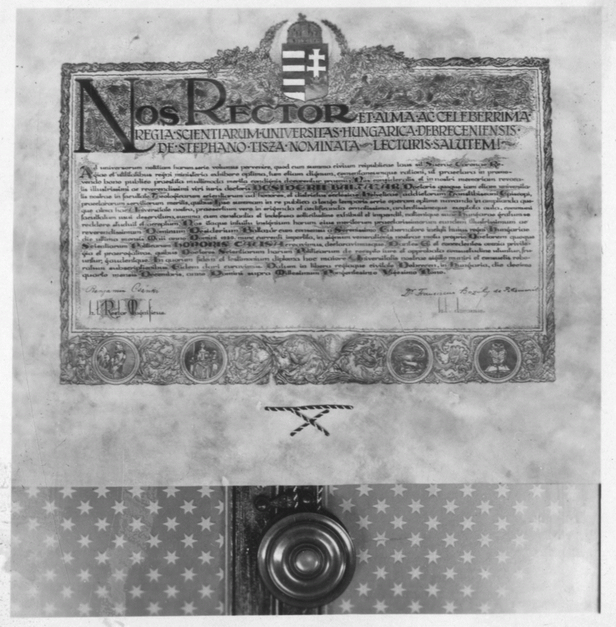 | dc.description.image | A képen Dr. Baltazar Dezső h.c. doktori diplomája látható (1929.XII.15.) | en |