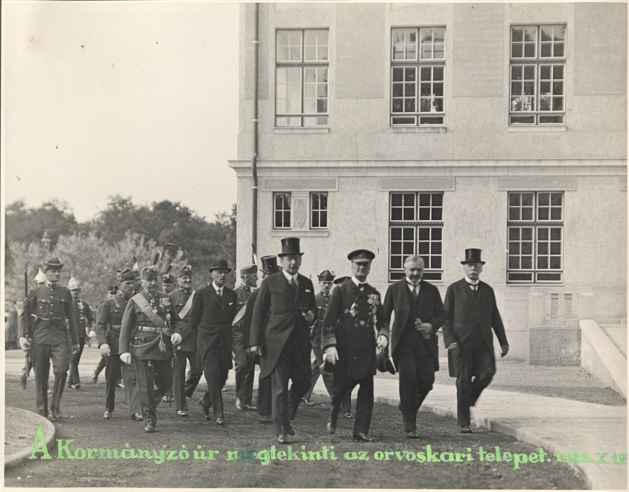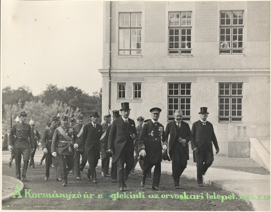 Horthy Miklós megtekinti az orvoskari telepet, 1926. X. 17.